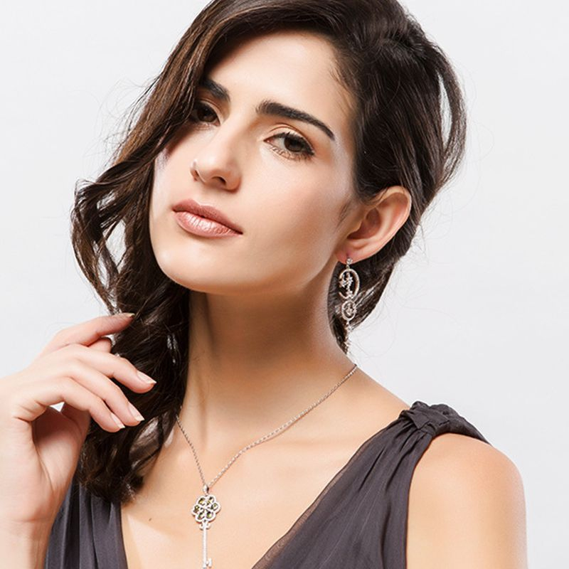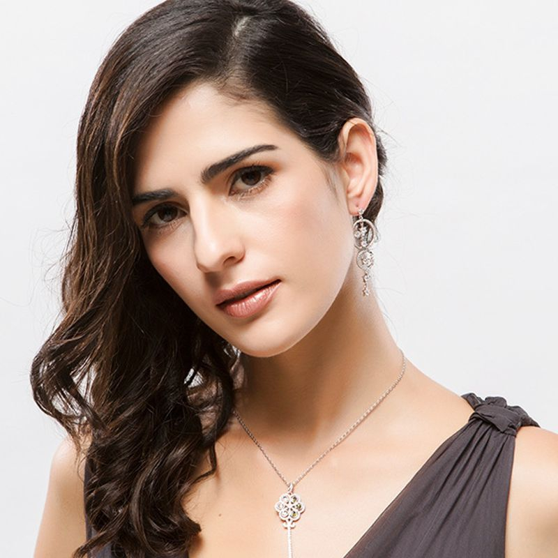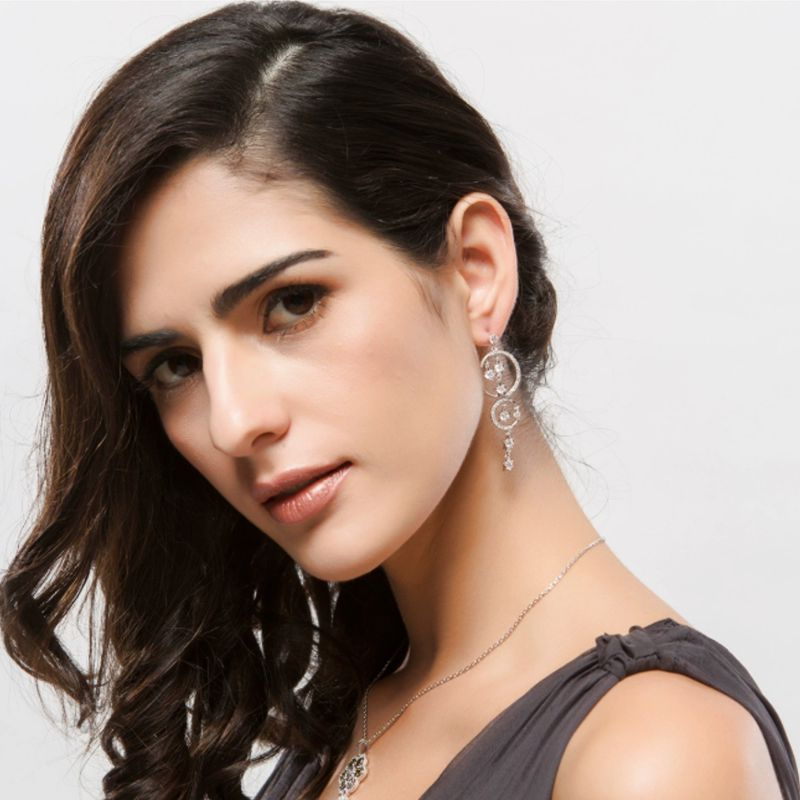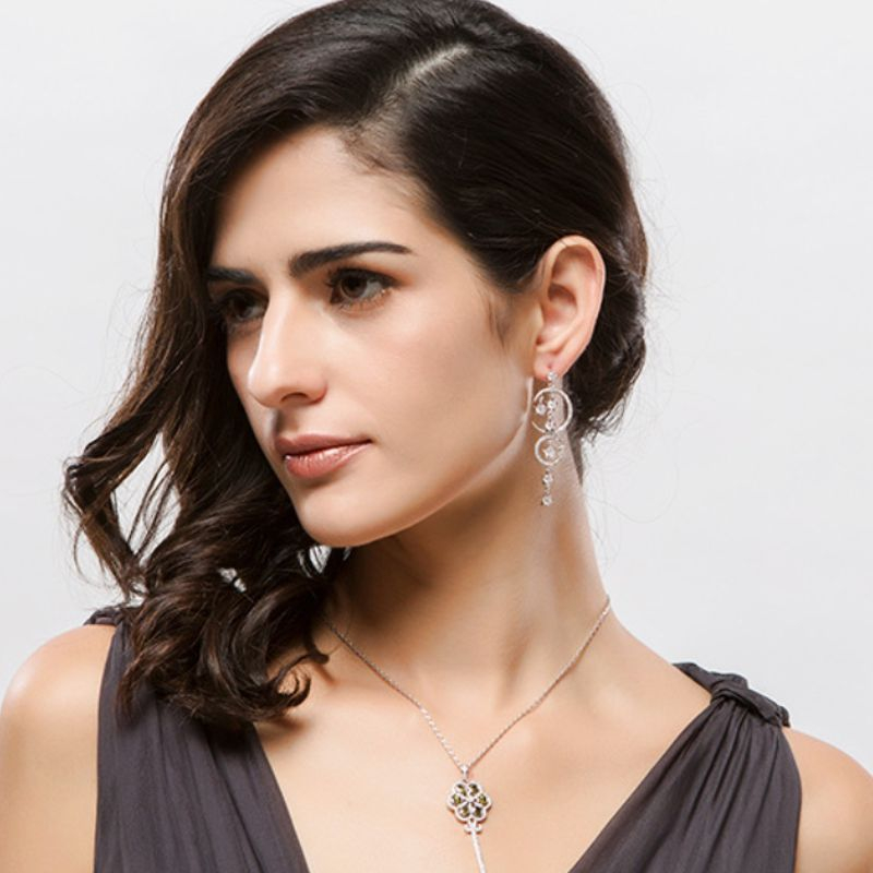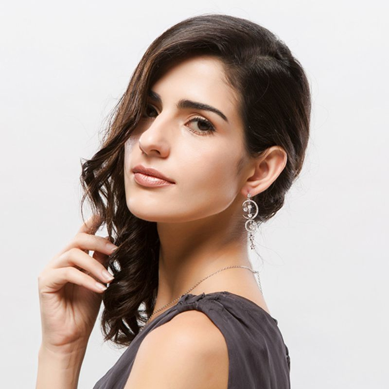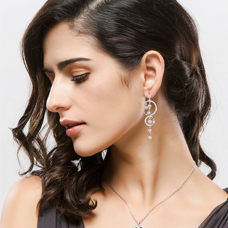 Dlhé, visiace náušnice zdobené Swarovski kryštálikmi /SWAROVSKI ELEMENTS/ vyrobené zo zlatníckeho kovu, povrchová úprava 18 karátové, biele zlato. Bez obsahu niklu a olova /antialergická bižutéria/. Sáčikové balenie. Spolu s certifikátom o autenticite Swarovski kryštálov.